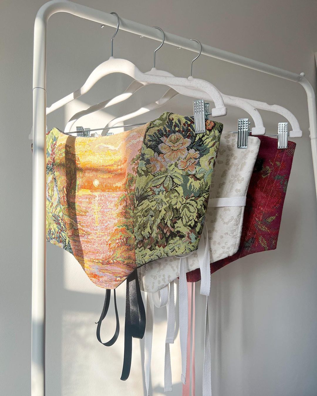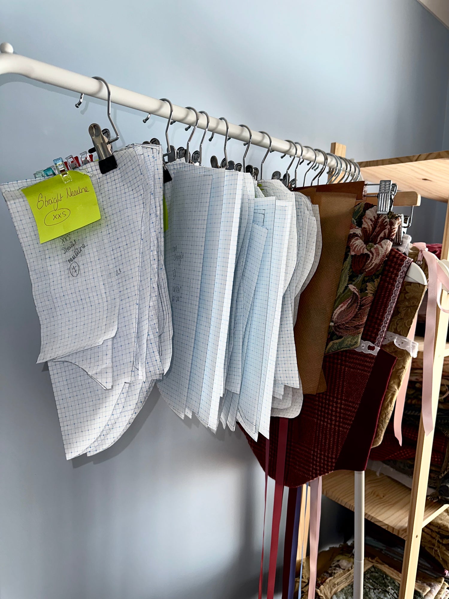 Usable scrap fabrics are saved and repurposed for our limited edition corsets.