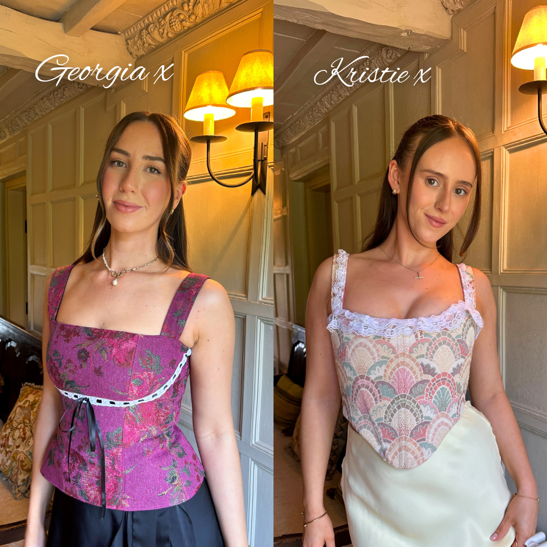 We pour our passion into every aspect of the design and sewing process. It begins with meticulously selecting and sourcing the perfect fabric, a defining element of our brand. Each corset is collaboratively designed by Georgia and Kristie to complement the fabric’s pattern, style, and colours. Once the design is finalised. Georgia cuts and sews each corset in-house, ensuring the highest quality and attention to detail.