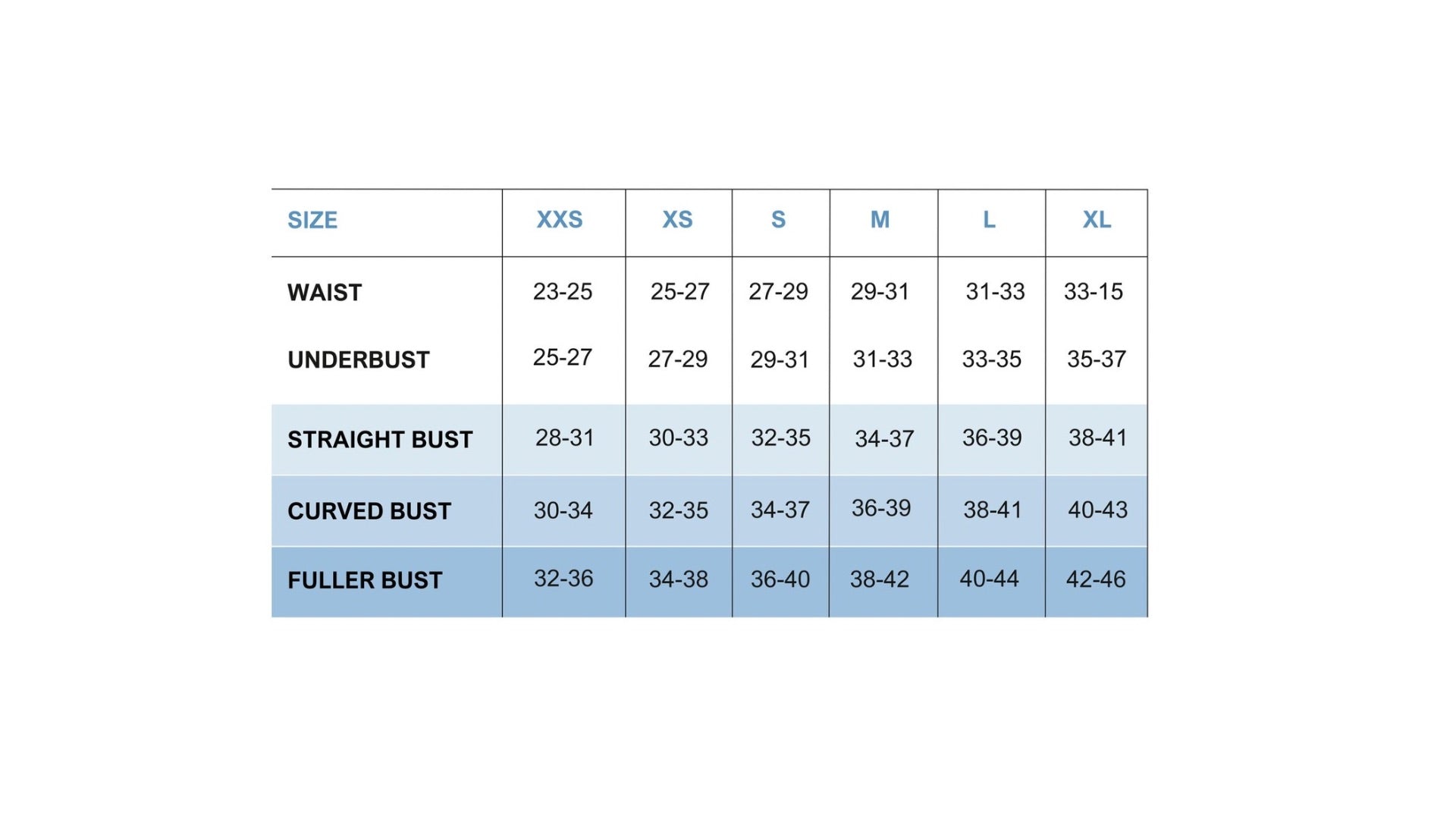 Based on the bust shape best suited to your measurements, check the charts below to determine your exact corset or bustier size.